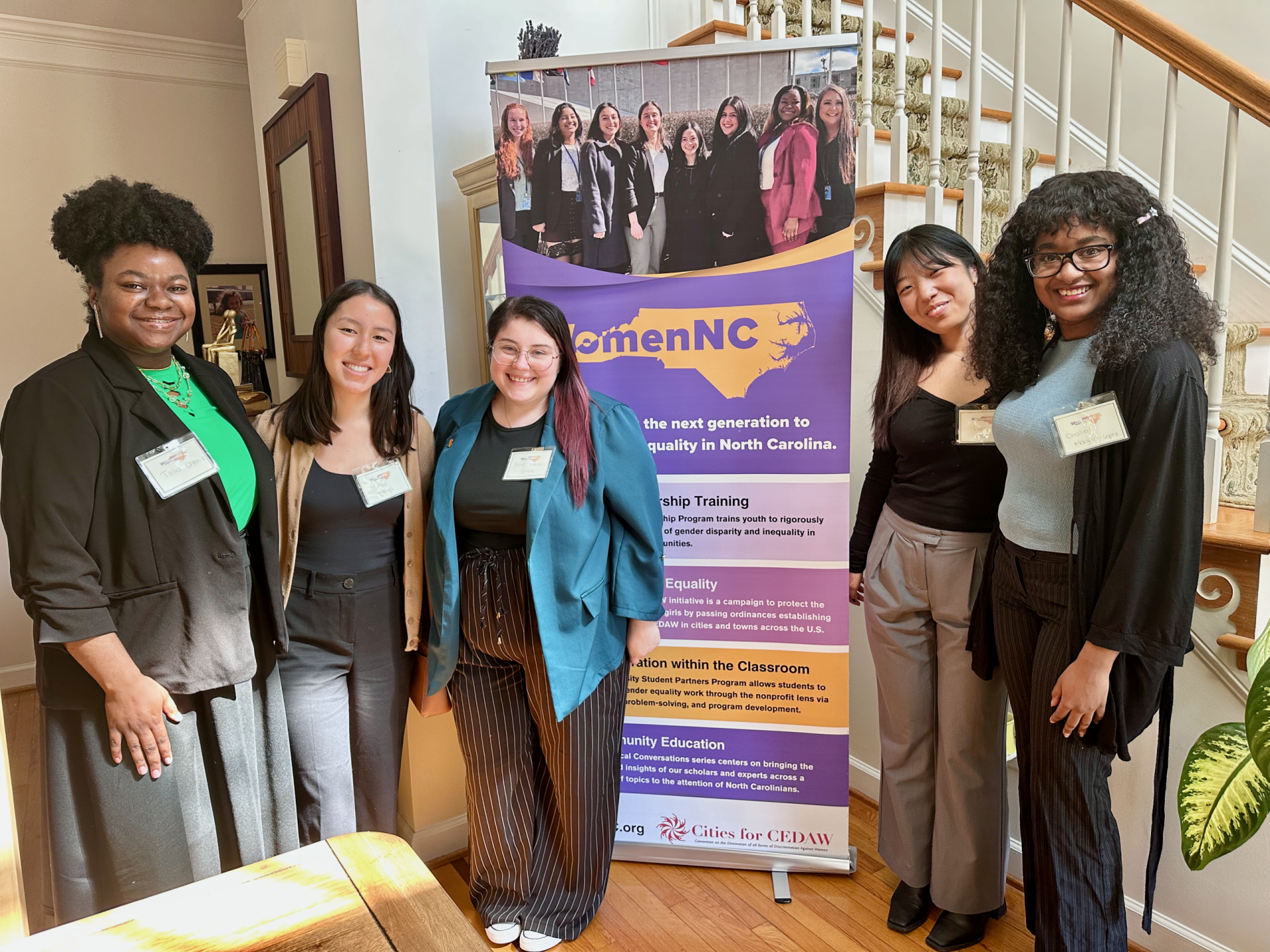 At WomenNC, we invest in the next generation of leaders. Through partnerships with universities, community colleges, high schools, and local NGOs, we equip youth with the skills to lead through research, advocacy, and civic engagement. Our programs train students to address issues of gender equity, connect with policymakers and community leaders, and bring local solutions to the global stage. By centering youth voices, we build a pipeline of changemakers who are prepared to shape more equitable communities in North Carolina and beyond.